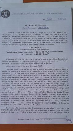 Oficialul de la Transporturi precizează pe Facebook că pe lotul 1 al A0 Nord au fost autorizate: