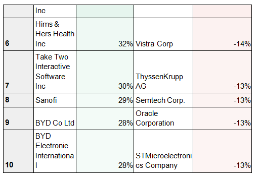 „Sectorul sănătății nu și-a revenit încă precum alte sectoare de când piețele globale au atins un minim în aprilie. De fapt, luând în considerare fondul Health Care Select Sector SPDR, acțiunile din sectorul sănătății din SUA au în prezent cea mai slabă performanță față de S&P 500 din ultimii 24 de ani. Acest lucru explică prezența numeroaselor acțiuni legate de sănătate și biostiinte în lista celor mai mari creșteri, deoarece investitorii le-au păstrat în speranța unei redresări mai puternice a sectorului.