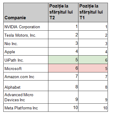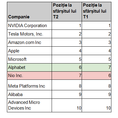 Tabelul 2: Prezintă acțiunile cele mai deținute de utilizatorii eToro la nivel global și poziția acestora în ultimul trimestru.