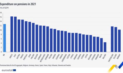 Țările din Europa au cheltuit, în 2021, aproape 1.900 de miliarde de euro cu plata pensiilor, cu o medie de aproape 13% din PIB, arată un studiu citat de www.studiifinanciare.ro.