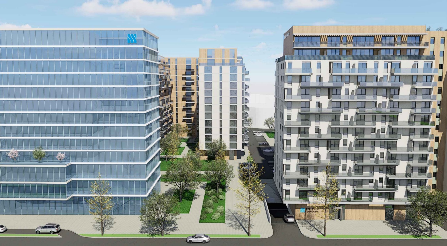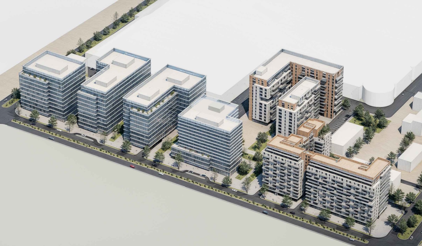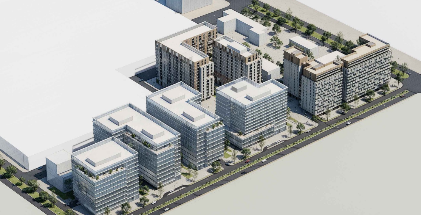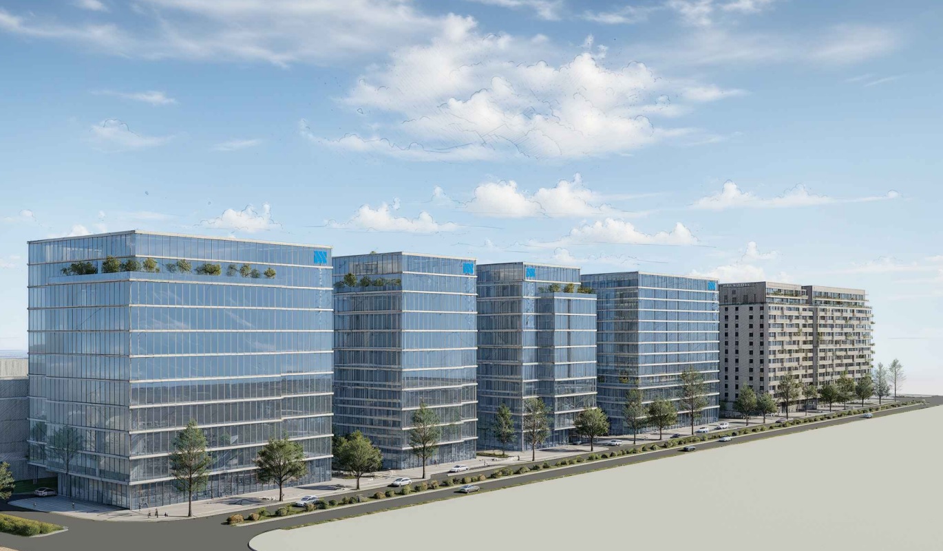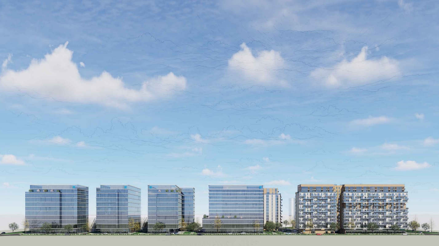 Din randări se pot observa patru clădiri de birouri și alte două rezidențiale, care au aceeași arhitectură cu clădirea în formă de U al cărei PUD a fost aprobat recent.