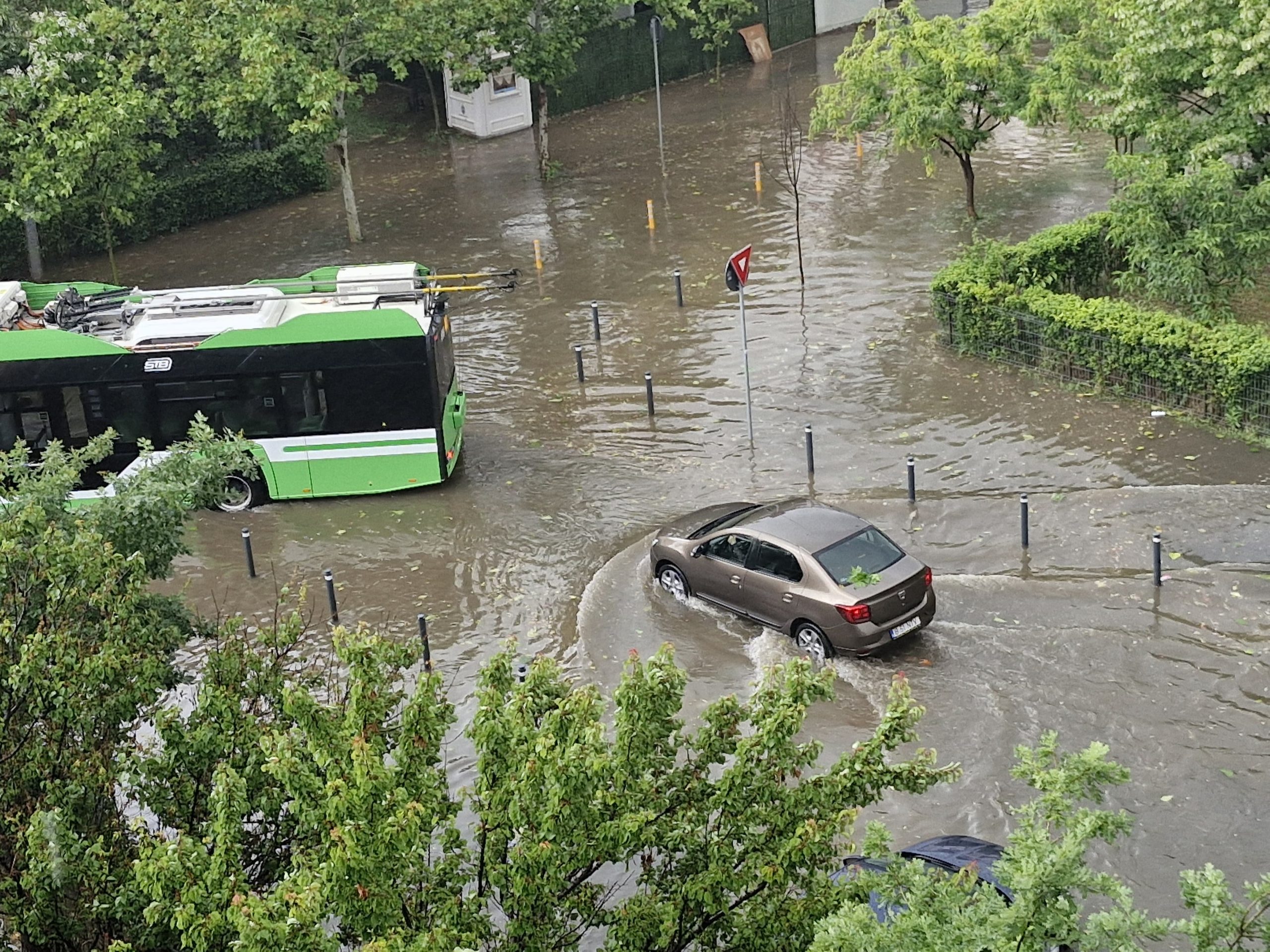Bucureştiul este inundat, copaci căzuţi, aeroporturi blocate, avioanele nu pot ateriza pe aeroporturile din Capitală.