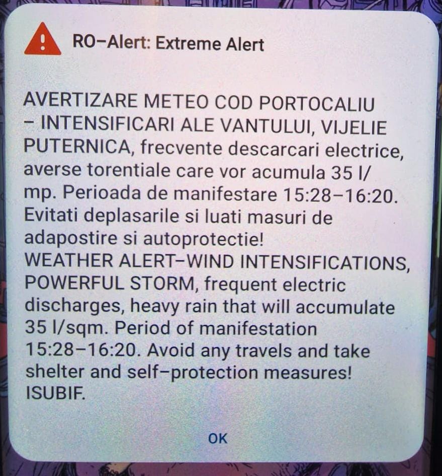 EVITAŢI DEPLASĂRILE ŞI LUAŢI MĂSURI DE ADĂPOSTIRE ŞI AUTOPROTECŢIE!