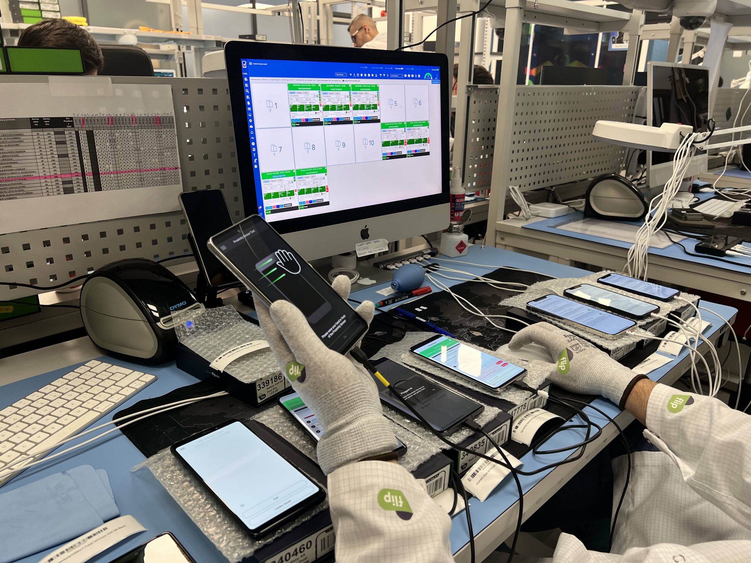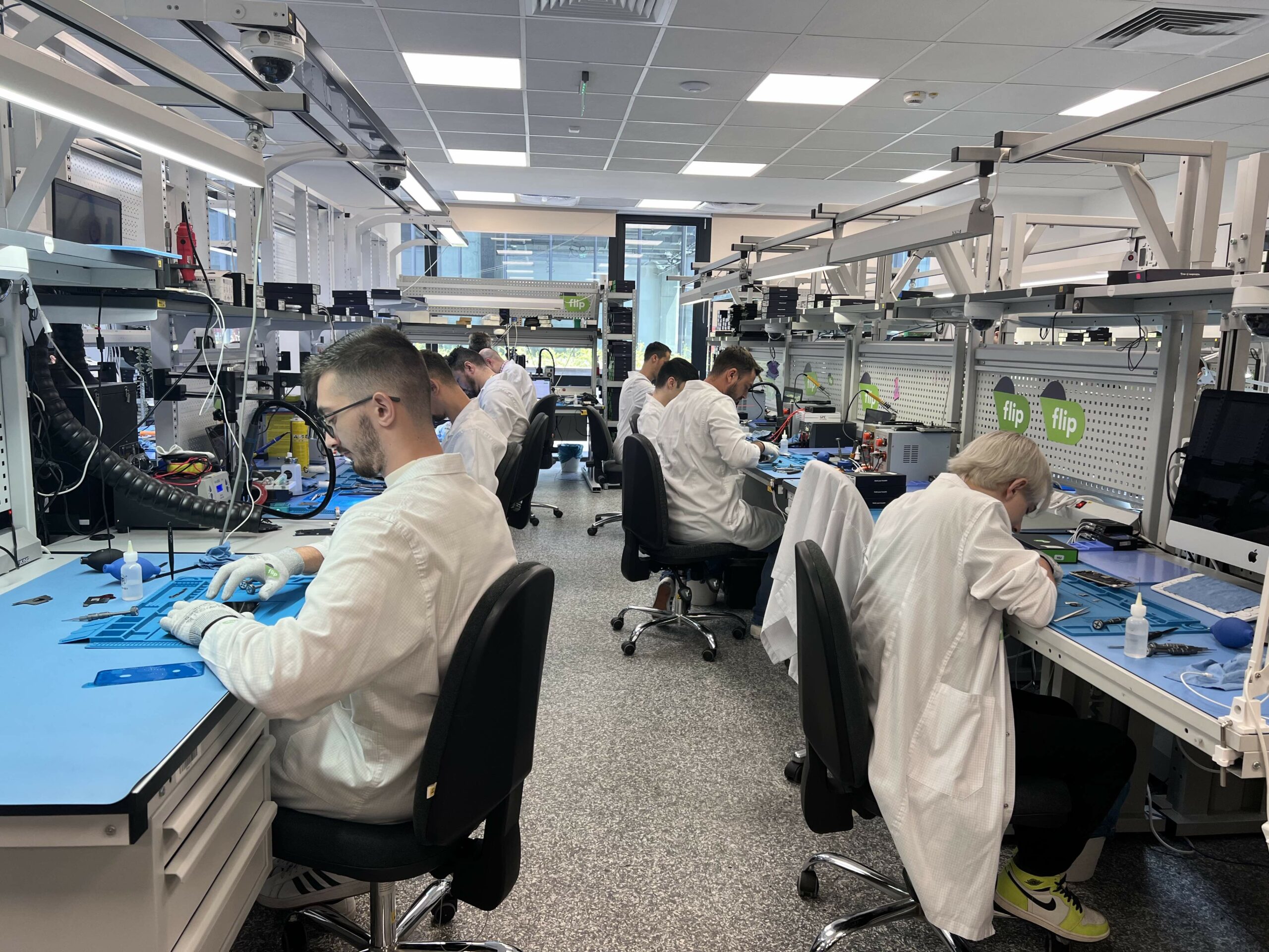 Odată ajuns la Flip după procesul de autoevaluare de pe site, telefonul intră în zona de despachetare, apoi merge la QC (quality control), unde trece prin 67 de teste de calitate și, tot de aici, se dă un raport despre acesta (dacă trebuie reparat sau schimbată vreo piesă). Dacă telefonul nu are nevoie de nicio reparație, merge direct la curățare, fotografiere, apoi întră în cutia Flip (telefon+încărcător+garanție+cheiță SIM) și este scos la vânzare. Dacă telefonul necesită schimbarea bateriei, carcasei, ecranului sau orice altă reparație, produsul ajunge în service. Aici, tehnicienii repară telefonul și înlocuiesc piesele care trebuie schimbate și abia apoi telefonul ajunge în magazin, unde își așteaptă noul cumpărător.