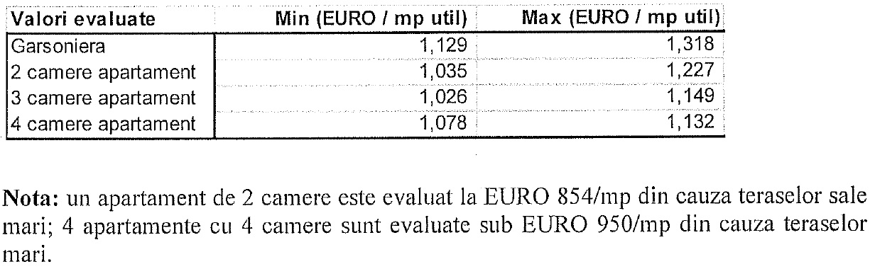 Iată care sunt valorile de vânzare pe metru pătrat, potrivit raportului de evaluare: