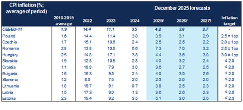 Deși în cea mai mare parte a Europei Centrale și de Est inflația a intrat pe un trend de scădere, evoluția prețurilor continuă să diferențieze clar economiile din regiune. La nivel regional, începutul anului 2026 este asociat cu o temperare graduală a inflației, însă România urmează o traiectorie distinctă. Această evoluție este alimentată de prețurile ridicate la alimente și servicii, dar și de măsurile fiscale cu impact direct asupra costurilor. Inflația persistentă prelungește perioada de dobânzi ridicate și limitează semnificativ capacitatea de stimulare a economiei prin politica monetară.
