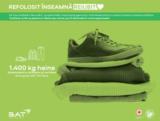 Consumul contidian ne face direct responsabili, pe fiecare dintre noi, de impactul generat asupra mediului. BAT România a dedicat luna martie activităților de eco-responsabilitate cu privire la comportamentul de consum al resurselor și, implicit, al hainelor. Astfel, angajații fabricii BAT din Ploiești (BAT Investment), ai entității locale de distribuție (BAT Trading) și ai centrului de servicii din București (BAT Global Business Services) au contribuit la campania de colectare de haine și la activități de conștientizare a impactului individual asupra mediului, sub formă de comunicări interne și training-uri despre principii și tactici de utilizare responsabilă a resurselor.