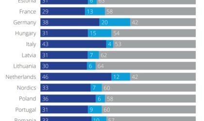 Datele colectate de Colliers în 2020 arată o mare dorință de a fi implementat un sistem de lucru hibrid și în România (43% muncă la distanță și 57% lucrând de la birou). Marea Britanie și Germania se remarcă datorită intenției relativ ridicate de a lucra din locațiile clienților/partenerilor (respectiv 23 și 20%).