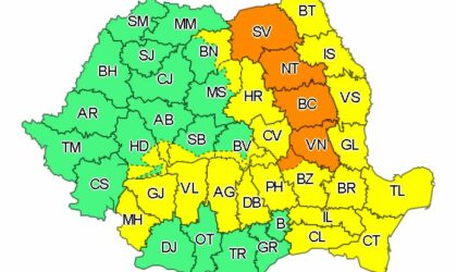 În acelaşi interval de timp va fi în vigoare şi un Cod galben de fenomene similare în Dobrogea, Moldova, estul Transilvaniei şi nordul Olteniei şi local în Muntenia, precum şi în zona Carpaţilor Meridionali şi Orientali. În aceste zone va ploua însemnat cantitativ şi vor fi perioade cu manifestări de instabilitate atmosferică. Aversele vor avea şi caracter torenţial, pe alocuri vor fi însoţite de descărcări electrice şi de intensificări de scurtă durată ale vântului. În intervale scurte de timp sau prin acumulare, cantităţile de apă vor depăşi 20 – 30 litri/mp şi pe arii restrânse 40 – 50 litri/mp.