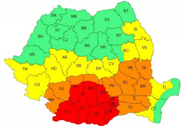 Totodată, duminică, 23 iunie, avertizarea Cod roşu de căldură persistentă şi intensă, caniculă şi disconfort termic deosebit de accentuat va fi valabilă în judeţele Dolj, Olt, Teleorman, Giurgiu, Ilfov, în sudul judeţelor Vâlcea, Argeş şi Dâmboviţa, precum şi în municipiul Bucureşti.