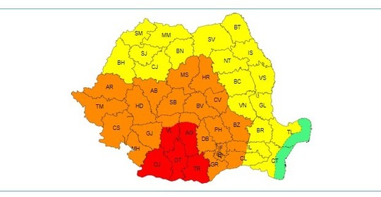 Totodată, avertizări Cod Galben de val de căldură şi disconfort termic ridicat au fost emise pentru acest weekend. Astfel, sâmbătă, valul de căldură se va menţine în Maramureş, nordul Crişanei, nordul Transilvaniei, dar se va extinde şi în Moldova, estul Munteniei şi Dobrogea continentală, regiuni unde se vor înregistra temperaturi maxime în general între 32 şi 34 de grade. Disconfortul termic va fi ridicat, iar indicele temperatură-umezeală (ITU) se va situa în jurul pragului critic de 80 de unităţi.