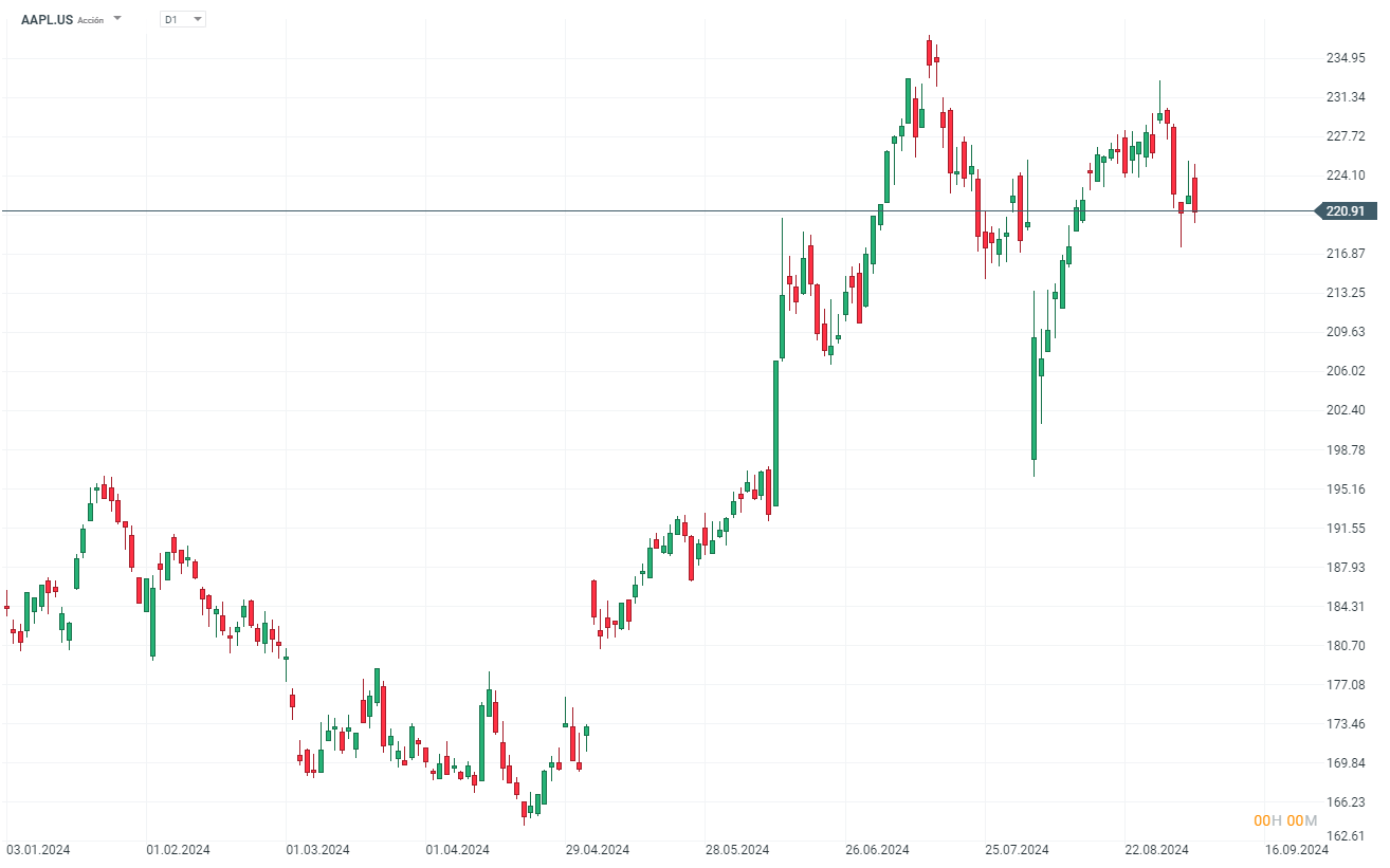 Cu toate acestea, de la minimele din aprilie, Apple a urcat cu peste 40%, atingând un nou maxim istoric în iulie, la 236 de dolari pe acțiune. Acțiunile companiei se tranzacționau cu 7% sub aceste niveluri înaintea evenimentului de luni seară, dar cererea de comenzi în zilele următoare prezentării le-ar putea „împinge” din nou către maxime.
