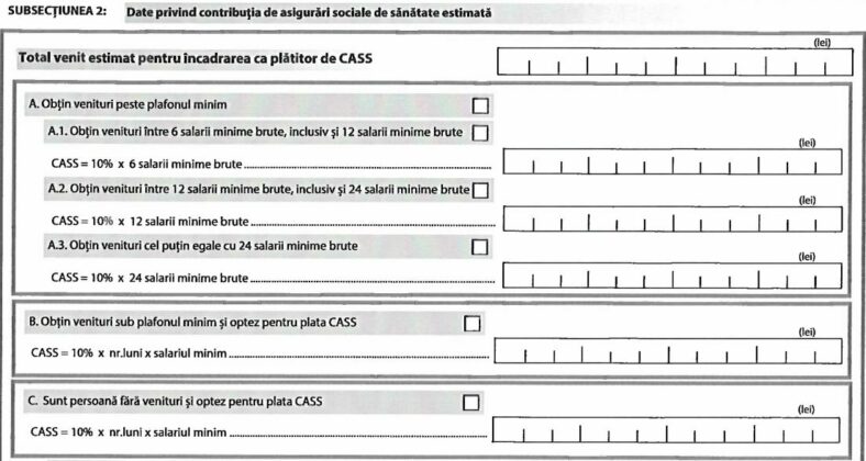 Bifaţi subsecţiunea a doua de la secţiunea a doua din formular: date privind CASS estimată.