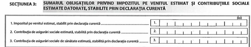 Secțiunea a treia – sumarul obligațiilor privind impozitul pe venitul estimat și contribuțiile sociale estimate datorate, stabilite prin declarația curentă