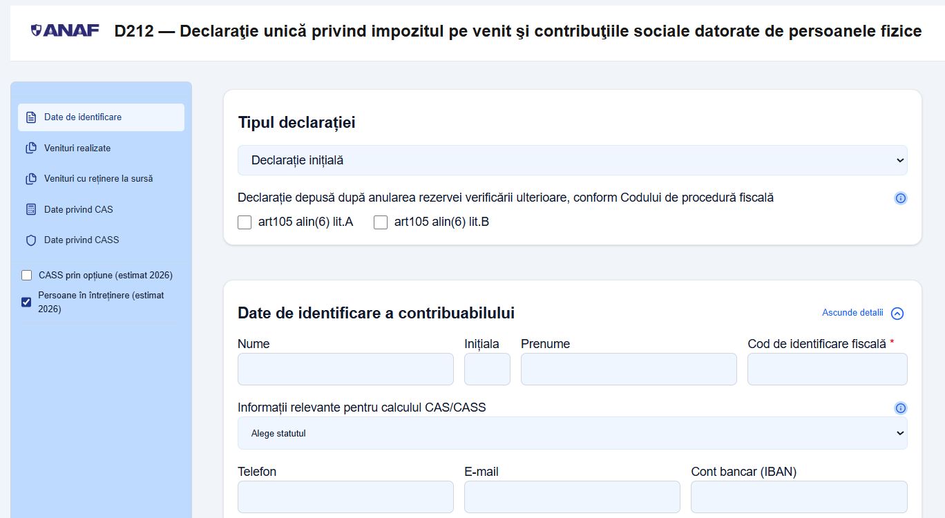 Modelul actualizat al declaraţiei unice pe care îl vor completa oamenii care încasează venituri fiscalizate şi care vor să-şi asigure la sistemul asigurărilor sociale de sănătate soţul, soţia, părintele fără venituri fiscalizate proprii pe parcursul anului 2026 e cel reglementat prin Ordinul preşedintelui ANAF nr. 2.736 din 23 decembrie 2025.