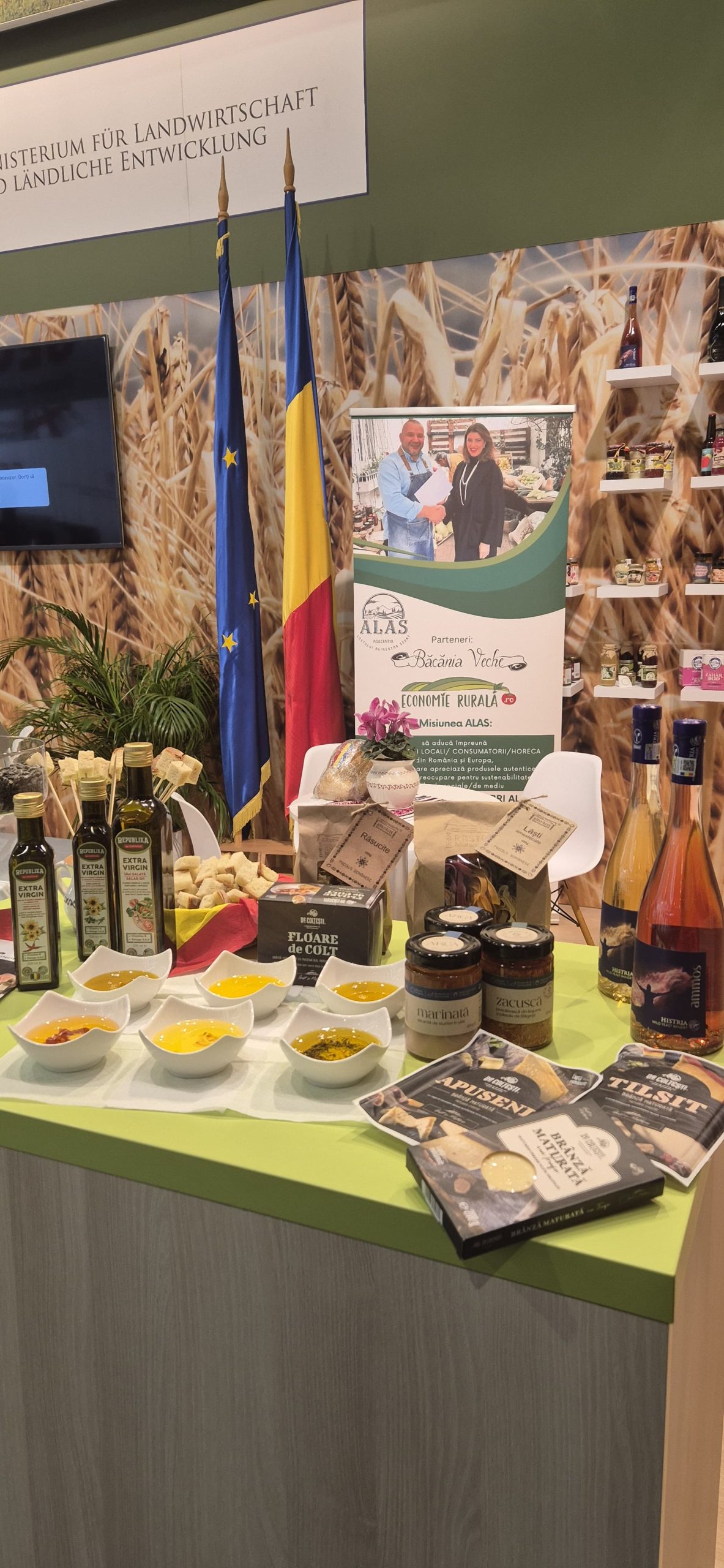 A.L.A.S. aduce la Berlin produse românești autentice din cinci colțuri ale țării: Alba, Bacău, Constanța, Giurgiu și Maramureș.