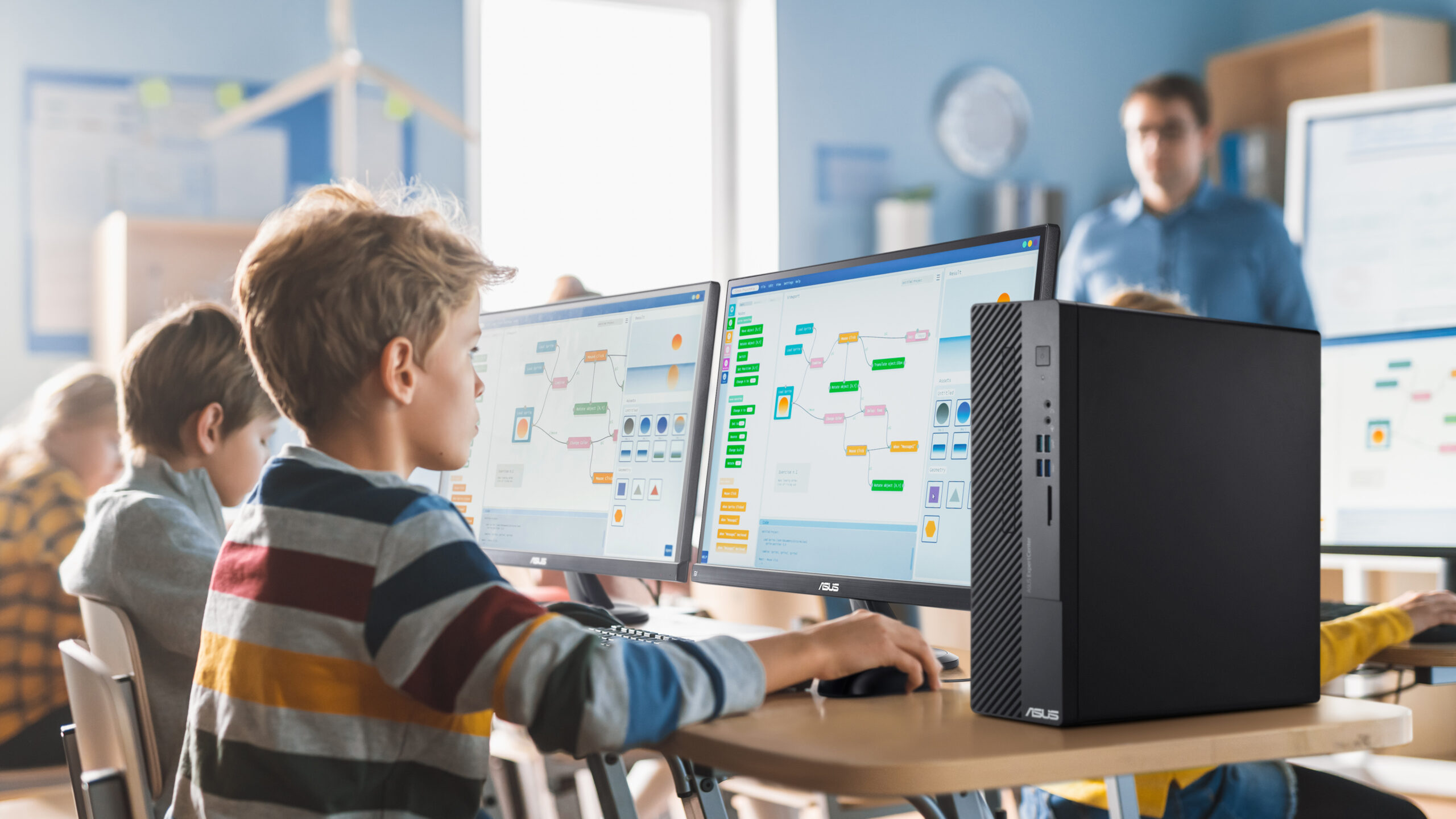 Spațiul disponibil în clădirile de birouri poate fi utilizat în mod eficient prin dotarea cu PC-uri de dimensiuni reduse ASUS ExpertCenter D5 SFF, sisteme compacte și eficiente care mențin un nivel scăzut de zgomot în timpul celor mai solicitante sarcini. Versatilitatea acestora permite instalarea orizontală sau verticală, adaptându-se ușor în spațiul disponibil de pe birou.