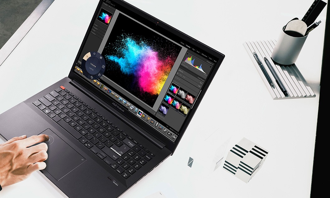 Aplicațiile grafice care au nevoie de o putere sporită vor rula fără probleme datorită plăcii video dedicate NVIDIA GeForce RTX 3050/3050 Ti cu 4 GB VRAM, iar utilizatorii programelor software Adobe vor aprecia atât interfața virtuală DialPad pentru un control mai precis al instrumentelor de lucru, cât și touchpad-ul mai mare cu 49%.