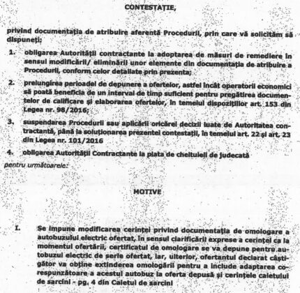 Totodată, producătorul turc cere prelungirea termenului pentru depunerea ofertelor, se mai arată în contestația înregistrată pe 28 iunie la CNSC.