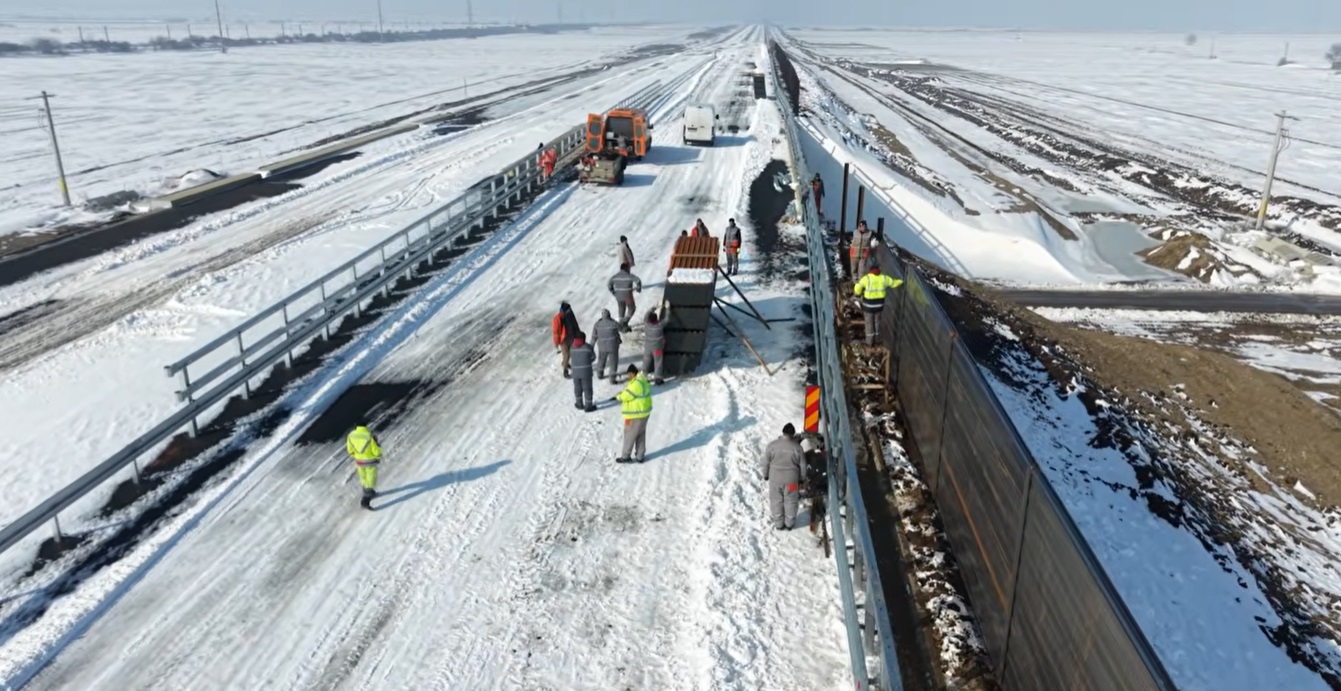 Lucrări pe timp de iarnă la tronsonul Adjud – Bacău al Autostrăzii Moldovei A7