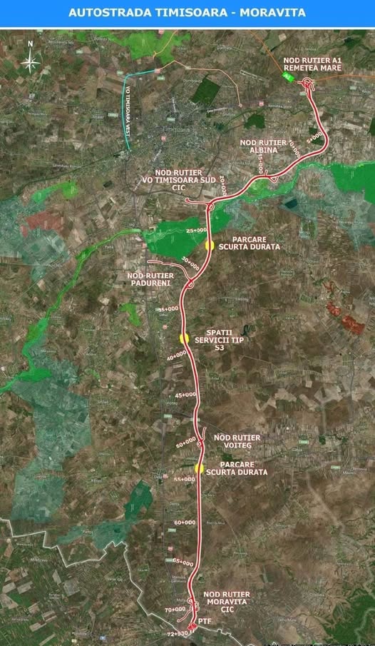 – două noduri rutiere (DN58B Voiteg și Moravița),