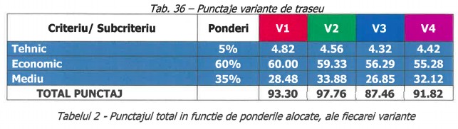 Varianta de traseu care a obținut cel mai mare punctaj – 97,76 puncte – este cea verde (2), potrivit documentului menționat.