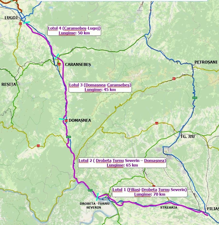 – Lotul 2 ( Drobeta Turnu Severin – Domașnea) va avea o lungime de aproximativ 65 de km cu preţul de 32,85 milioane de lei fără TVA