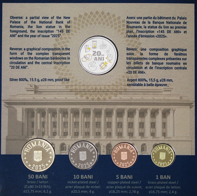 “Lansarea în circuitul numismatic a setului de monetărie cu tema 145 de ani de la înființarea Băncii Naționale a României și 20 de ani de la denominarea monedei naționale se realizează prin sucursalele regionale Bucureşti, Cluj, Constanța, Dolj, Iaşi şi Timiş ale Băncii Naţionale a României”, mai informeaz[ banca centrală.