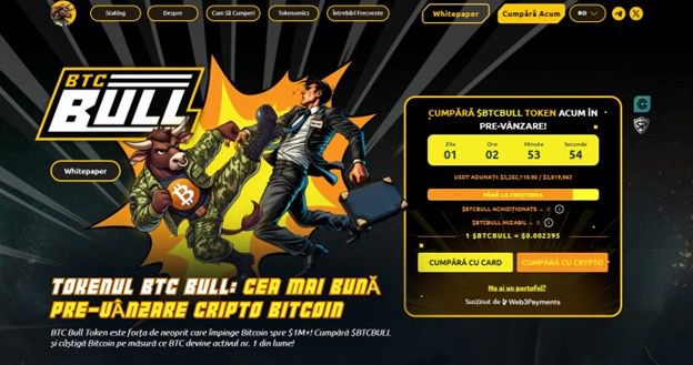 Pe de altă parte, BTC Bull ($BTCBULL) a atras atenția ca o monedă meme oficială dedicată entuziaștilor Bitcoin. Într-un interval scurt, presale-ul BTC Bull a atins deja pragul de 3 milioane de dolari.
