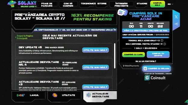 Solaxy își propune să îmbunătățească scalabilitatea și eficiența rețelei Solana. Proiectul oferă soluții Layer-2 care să permită tranzacții mai rapide și costuri reduse. Există așteptări ca valoarea $SOLX să crească pe măsură ce presale-ul avansează și proiectul se dezvoltă.