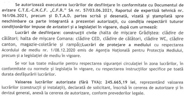 Termenul de execuție a acestor lucrări de desființare clădiri este de patru luni, potrivit documentului publicat pe site-ul Ministerului Transporturilor.