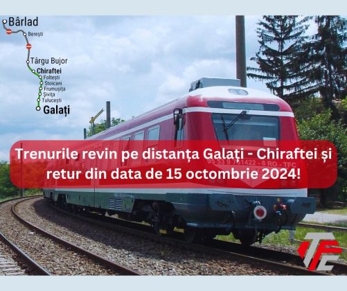 Circulația feroviară pe linia distrusă de inundații Galați – Bârlad a putut fi reluată parțial de la jumătatea lunii octombrie de la Galați până la Chiraftei, a anunțat atunci grupul Transferoviar. Pentru tronsonul Chiraftei – Bârlad, a fost necesară aprobarea ARF în vederea transportului călătorilor cu autocare. Transferoviar Călători a anunțat ulterior că, începând din 4 noiembrie 2024, în vederea asigurării continuității serviciului de transport pe ruta Galați – Bârlad, pe distanța Chiraftei – Bârlad și retur au fost introduse autocare înlocuitoare care asigură preluarea călătorilor de la trenurile care circulă pe distanța limitată Galați – Chiraftei.