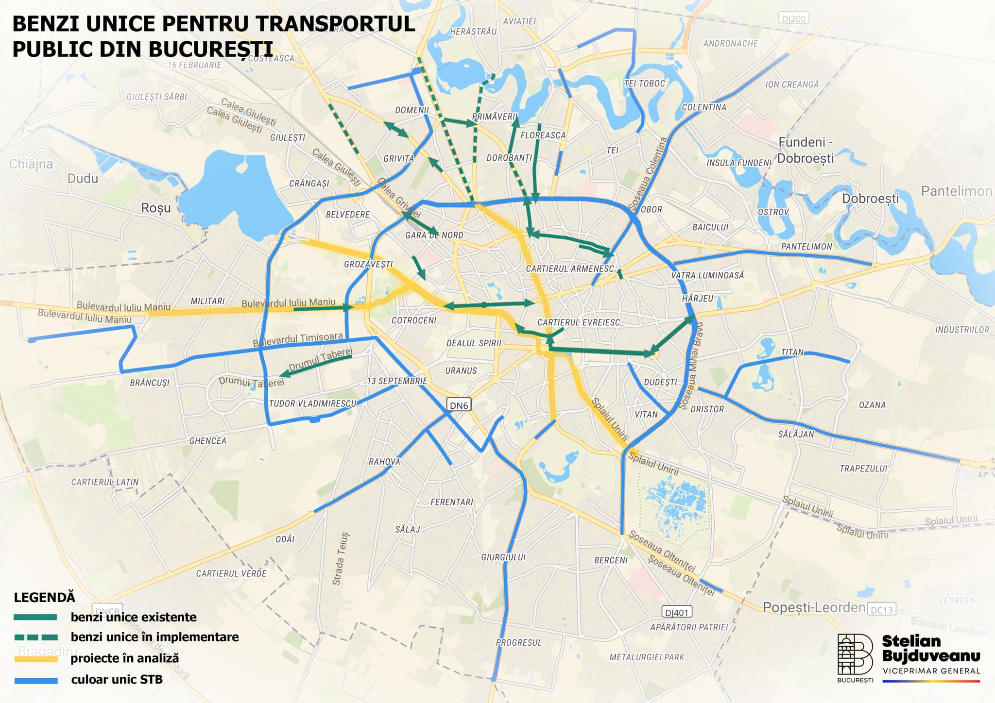 Până în prezent, în Municipiul București sunt peste 23 km de benzi unice STB existente și în curs de implementare.