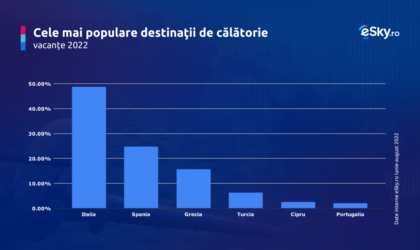 Italia s-a clasat în mod tradițional pe primul loc în clasamentul eSky.ro al celor mai populare destinații ȋn iunie-august 2022. Românii au ales cel mai des Roma, Milano, Veneția, Napoli și Bologna. Următoarea în clasament a fost Spania cu oraşele Barcelona, Madrid și Valencia. Grecia a ocupat locul 3 în clasamentul celor mai populare destinații, cele mai căutate orașe fiind Atena, Corfu și Salonic. Următoarele în clasament au fost Turcia, Cipru și Portugalia.