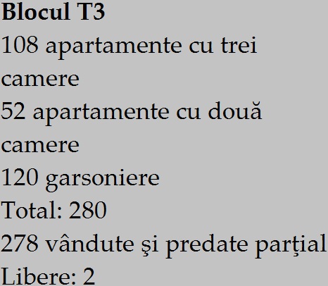 Singurul bloc, în care câţiva proprietari s-au şi mutat este T3. Dar, 571 de persoane, excluzând investitorul care a cumpărat un bloc întreg, au plătit avansuri pentru o locuinţă în care nu s-au mutat nici după şase ani de la demararea lucrărilor.