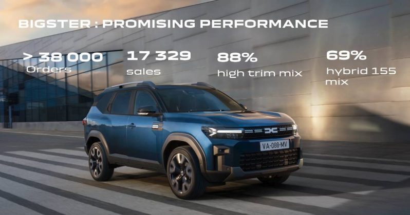 Ajuns pe piață la începutul acestui an cel mai mare vehicul al mărcii românești, SUV-ul de clasă C Bigster, a fost comandat în peste 38.000 de exemplare, dintre care 17.329 au fost deja înmatriculate. 88% dintre comenzi vizează versiuni superioare de echipare, cu marjă de profit mai mare, iar 69% dintre clienți au dorit mașina cu sistemul hibrid de 155 CP.