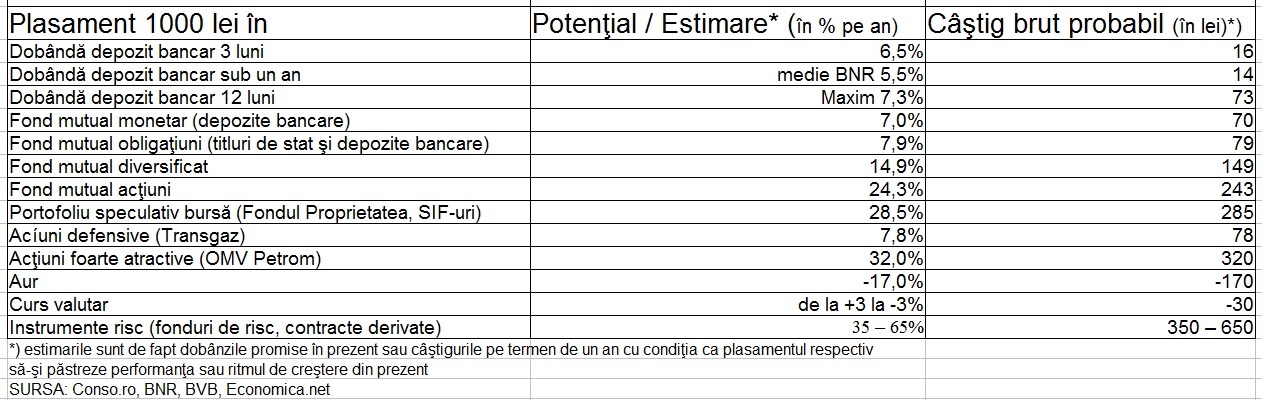 Plasamentele sunt cu atât mai profitabile (şi mai riscante) cu cât se apropie mai mult de bursă, potrivit calculelor ECONOMICA.NET.