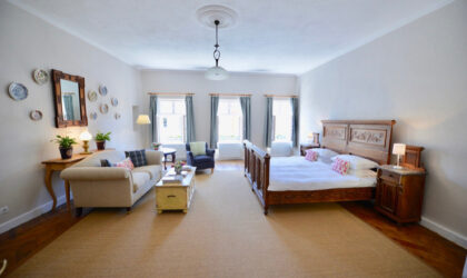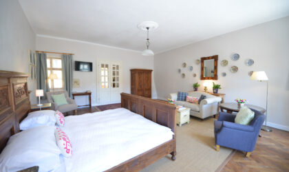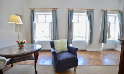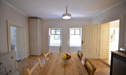 Apartamentul Medieval are pe pereți picturi conservate care datează din anii 1700. Ambele unități sunt mobilate, iar prețul de vânzare include și această echipare.