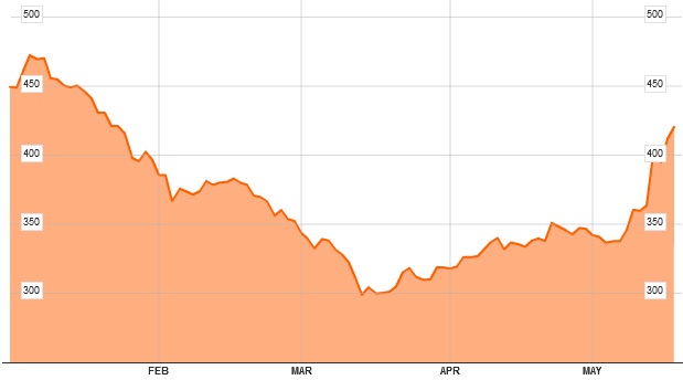 Prima ce trebuie plătită de un investitor pentru contractele CDS (credit default swaps) pe 5 ani a crescut cu mai bine de un punct procentual de la mijlocul lunii martie, la 423 de puncte de bază (4,23%). De la căderea cabinetului Ungureanu prin moţiunea de cenzură votată de parlament în 27 aprilie prima de risc a crecut cu peste 70 de puncte de bază, însă creşterea cea mai importantă a venit după ce rezultatul alegerilor din Grecia a aruncat în aer posibilitatea de formare a unui nou cabinet la Atena şi, implicit, a complicat soarta elenilor în zona euro. Contractul CDS reprezintă fie o asigurare a deţinătorului de obligaţiuni a unui stat sau a unei companii că în cazul unui faliment sau a unui default parţial acesta îşi va primi banii înapoi, fie un pariu a unui investitor pe faptul că o ţară sau o companie va intra în faliment.