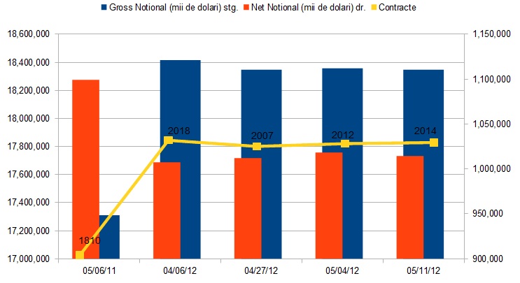Faţă de acum un an, valoarea brută noţională a crescut cu mai bine de un miliard de dolari şi numărul contractelor încheiate a crescut cu 200. În acest moment, după volumul tranzacţiilor, piaţa contractelor care au ca suport statul român este printre primele 40 de pieţe pe emitenţi suverani la nivel mondial.