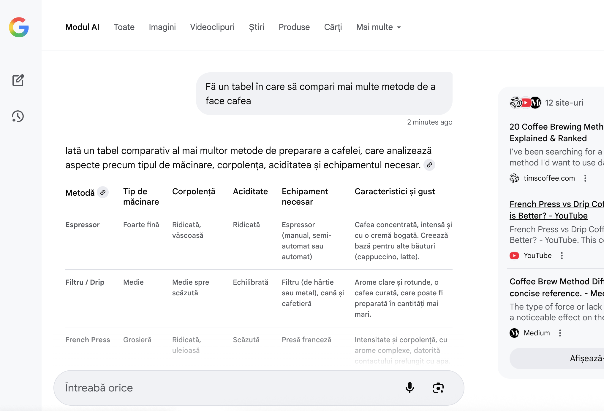 Modul AI reprezintă cel mai puternic instrument de căutare oferit de Google, capabil să răspundă la cele mai complexe întrebări.