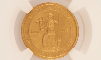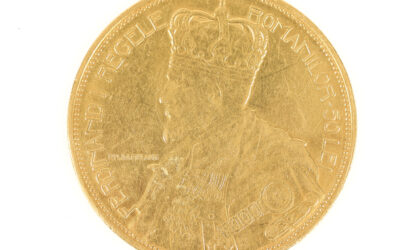 Moneda de 50 lei din 1922, din aur. Un lot asemănător a fost adjudecat cu suma de €8331 (CHF 9000) la casa de licitații „Sincona Swiss International Coin Auction AG”, Zürich, Elveția, 8 iunie 2020. Preț de pornire: 5.000 de euro.