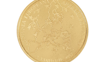 Monedă comemorativă BNR, Aderarea la Uniunea Europeană, 2007, aur, tirajul de doar 250 de exemplare, preț de pornire: 2.000 de euro.