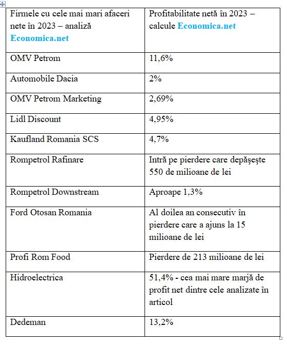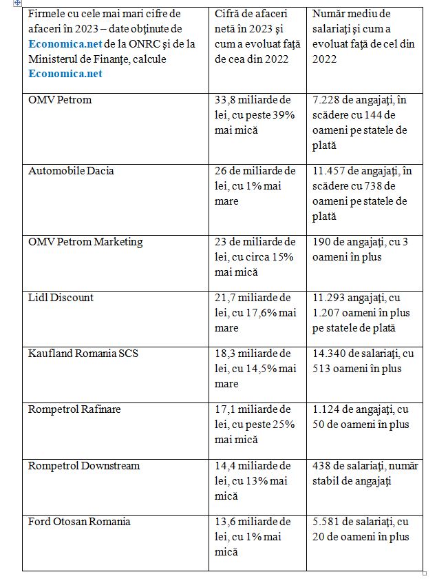 În total, 18 companii din economie au realizat afaceri nete peste pragul de 10 miliarde de lei în 2023, arată analiză Economica.net.