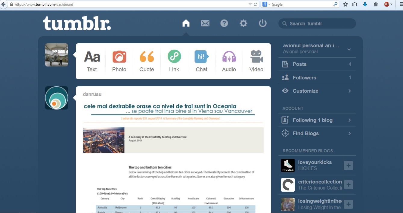Platforma de microblogging a pătruns binişor şi în România. Tumblr este un amestec de blogging şi social media, unde utilizatorii pot posta fotografii și clipuri video.