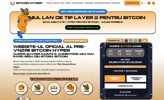 Până la mijlocul lui septembrie 2025, Bitcoin Hyper a strâns deja peste 16,8 milioane de dolari în presale, cu un preț de 0,012945 USD pe token. Proiectul oferă și staking cu randamente ridicate, atrăgând atât investitori individuali, cât și „balenele crypto”. Roadmap-ul include lansarea testnetului până la finalul lui 2025 și listarea tokenului nativ $HYPER pe burse de criptomonede.