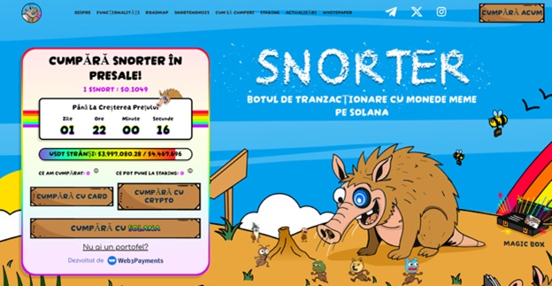 Proiectul se află în plin presale, cu aproape 4 milioane de dolari deja strânși. Tokenul SNORT are un preț de aproximativ 0,1045 USD și va crește la următoarea etapă. Pentru cei care urmăresc cele mai bune criptomonede emergente, Snorter combină utilitatea practică cu energia sectorului meme coins, lucru care îl face diferit de multe alte proiecte speculative.