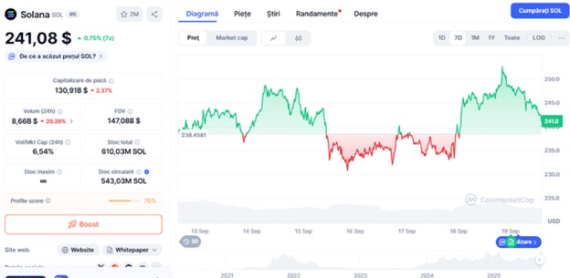Totuși, altcoins nu înseamnă doar meme coins. Printre marile nume care își consolidează poziția se găsește și Solana (SOL). Activul este considerat de mulți analiști ca fiind una dintre cele mai bune criptomonede pentru 2025.