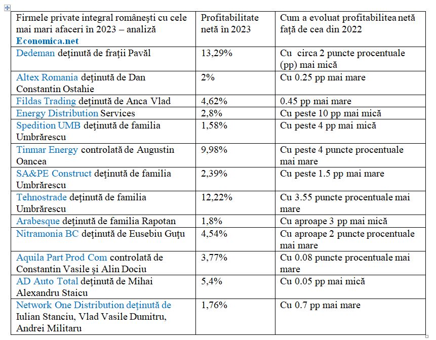 Dedeman are cea mai mare marjă de profit net în 2023 dintre firmele private integral româneşti cu afaceri nete peste pragul de 2 miliarde de lei, în ciuda scăderii cu aproximativ 2 puncte procentuale a valorii acestui indicator, conform analizei Economica.net.