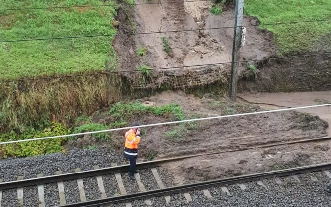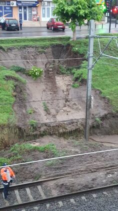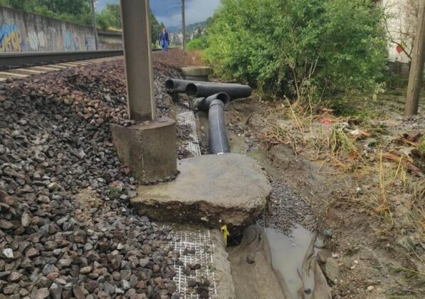 – Sinaia – Bușteni (firul II) – terasamentul liniei de cale ferată a fost spălat de ape